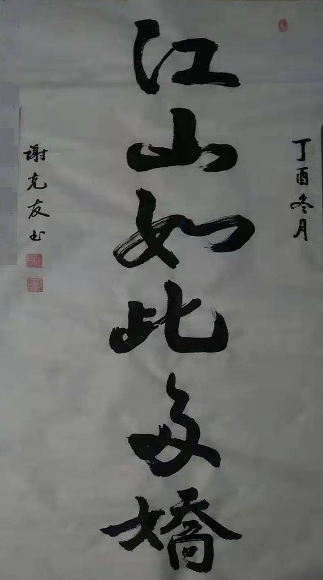 谢克友,汉族,1964年3月3日生,吉林延吉市人,党员,大学文化,现为延边州书法家协会会员、延边州美术家协会会员,中国民间书画研究会会员、中国美术家书法家协会会员,中国文学艺术联合会会员,中国泰山书画院理事。自幼喜爱书法绘画。1981年在铁道兵直属师级机关所属系统板报、宣传栏评比中,获三等奖。1991年12月,参加延边州直机关首届书法绘画大赛,国画作品《麻姑祝寿图》获二等奖。1995年州直机关书法比赛获三等奖,1995年加入延边州书法家协会。1998年参加延边画家邀请展,国画作品获得“入展奖”。2006年参加延边州反腐倡廉书法大赛,作品获优秀奖。2007年国画作品《赏梅图》参加延边州成立55周年美术作品展,获纪念奖。2008年加入延边州美术家协会,成为会员。2008年参加州直机关“广电杯”反腐倡廉书法比赛获二等奖。2011年参加州直机关“吉林银行杯”庆祝建党90周年书法比赛,作品荣获三等奖。曾受到中国书法家协会会员、中国美术家协会副主席姜慧民先生教诲,受到延边州美术家协会、书法家协会副主席曹乾立、延边州国画院院长田成义先生的指导。2011年参加中国东莞观音山杯书法艺术展,作品被收藏。2011年参加“丝路重镇,魅力景泰”全国书画邀请赛,获“入围奖”,作品被永久收藏。2012年参加延边州直机关迎州庆60周年“廉政文化作品创意大赛”,有2件作品获入展奖。其中书法作品长卷《中华百龙图》进行专栏展出。2012年参加“中国农村文化节”书法比赛,作品获优秀奖。2012年参加“中国天砚山杯”书法比赛中,有5件作品获得“入选奖”。2012年参加第二届“中国民间”书画精品大赛,作品获优秀奖。同年,加入中国民间书画研究会成为会员。2012年参加首届“颖淮之光杯”全国美术书法作品大赛,作品获“银奖”。2013年参加第四届“羲之杯”全国诗书画家邀请赛,书法作品获得三等奖。2013年参加中国泰山“松柏杯”书画家大赛,书法作品获“突出贡献奖”。2013年参加全球华侨华人书画大赛,书法作品获二等奖。2014年参加州直机关书法比赛,获二等奖。2015年在第五届中国民间书画大赛中,书法“精气神”获优秀奖。2017年被美国邮票公司吸收为中国书画家艺术邮票册,2020年被中国邮票入选建党99周年艺术邮票相册,现为香港书法家协会会员。