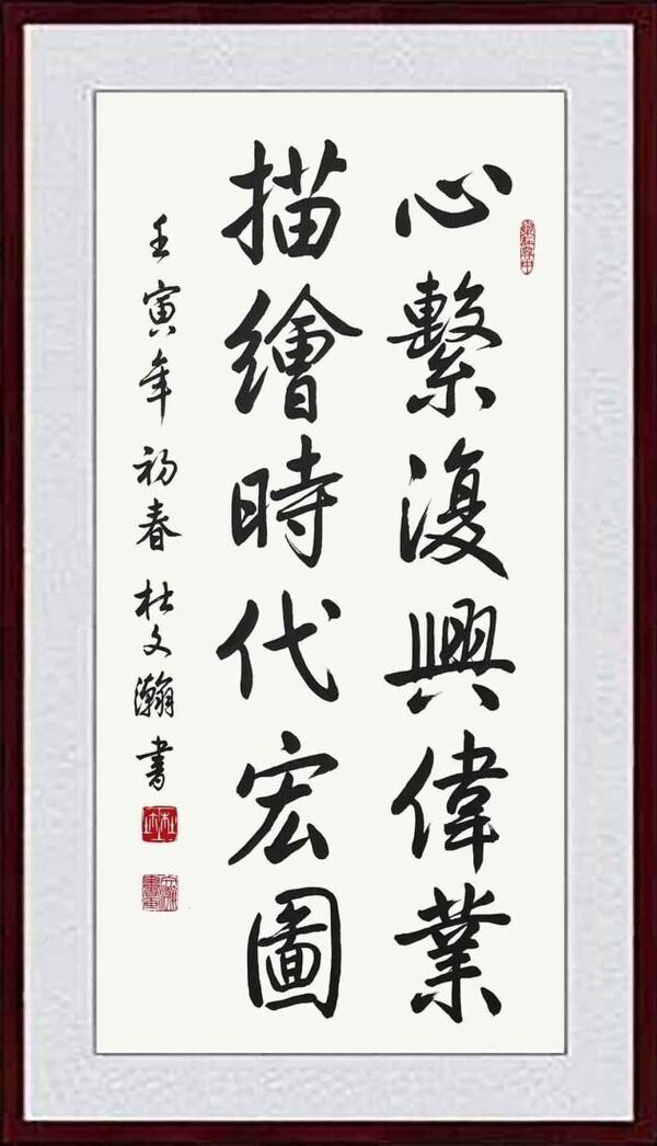 杜文瀚(汉)1942年生于天津,国家一级美术师,高级书法家,国礼艺术家,中国书画家协会终身名誉主席。其绘画作品涉猎多个画种,中西融合,画风严谨。书艺取法高古、上追秦汉魏晋、熔铸历代名家精华,书法创作敬畏传统,功力深厚。在创作中坚持真善美的格调,古拙端庄、俊秀洒脱的书风。书法作品具有浓厚的审美理想和浪漫精神以及强烈的时代风貌和独特风格。