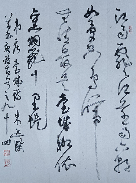 小即研珠戏墨,醉心书艺,其草书以遒劲、厚朴、洒脱而别具一格。枯润得法,恣纵不失内敛;简静精致,崎岖融于法度。“手追”且“心摹”,重古不泥古。灵气逼人,炉火纯青。2009年,他的百米长卷公开展示六千余字,一气呵成。字字珠玑,超逸脱尘,又气势磅礴,神采飞扬。