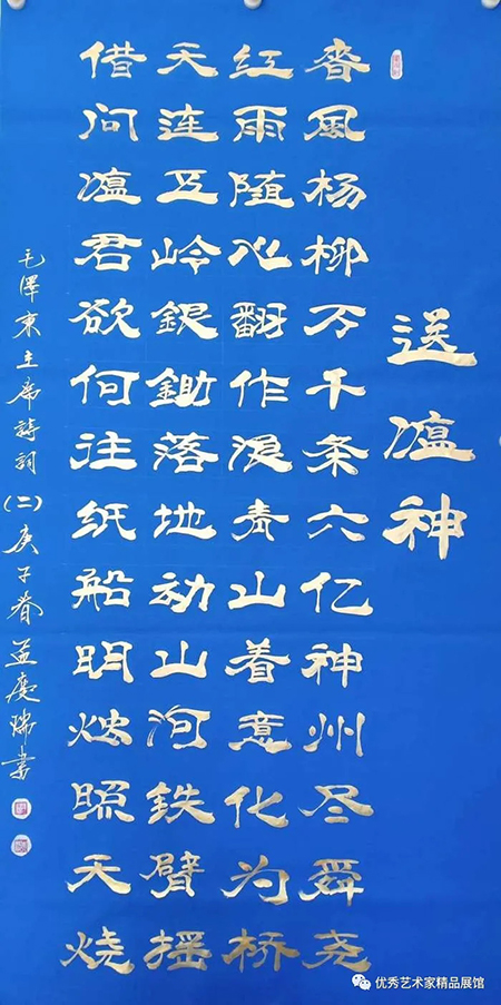 2015年书法作品被北京庆祝毛泽东主席诞辰122周年大会组委会作为礼品送给毛泽东主席的女儿李纳收藏。