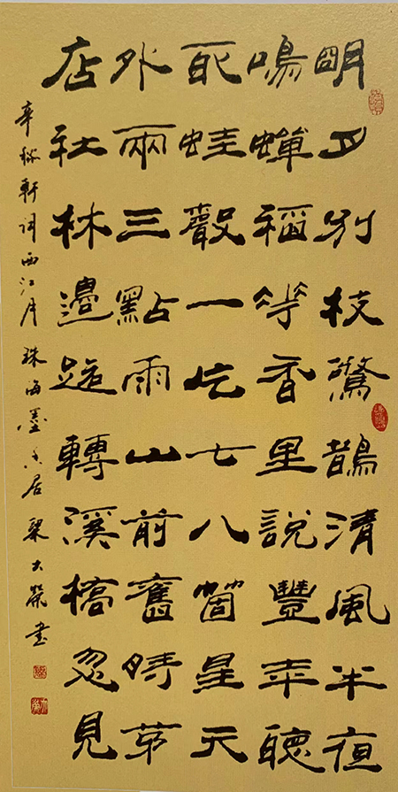 梁大荣,广东信宜市镇隆人。中国书画名家研究会名誉主席丶中国书协会员、国家高级书法师丶艺术品牌资质:顶级。作品入选“北京奥运纪念碑林"、“和平碑林"、“中华名家专题邮票"、《中国艺术六大名家》、《中国艺术大家》等。2018年12月、作品以国礼赠送吉尔吉斯共和国政要。中国文联授予:“艺术传承人物"、“中国书画终身成就奖"、中国书协授予“人民艺术家"、中国非物质文化遗产委员会授予“非物质文化遗产创新人才"、中国国学会授予“国家六大艺术泰斗”等荣誉。文化部艺术发展中心评估鉴定、书法作品为9、5万元/平方尺。