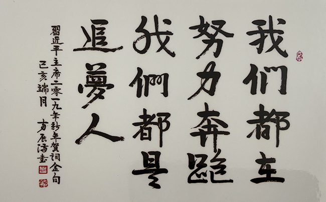 其书法作品深受广大书法爱好者的好评和喜爱,得到名家们的高度赞扬和评价。著名书法教育家欧阳中石教授称:“方展满先生从用墨、章法布局来看,可谓心平气和、大巧若挫、尽情尽兴、兴到笔随,随意挥酒。远观作品,遒劲、朴实、厚重、洒脱;近观则优雅自然、飘逸灵动的视觉魅力,能使不懂书法者也能感觉到其中的如虹气势和古朴之韵;其作品苍劲有力,气度非凡,美不胜收,有滚滚风云一泻千里之势,可谓当代一代书法大家。”中书协名誉主席、著名书法家、中国书画艺术交流中心顾问沈鹏教授称:“品读方展满先生的书法作品,师古从今博众家之所长;其作品鬼斧神工点墨成金,精于心而隐于形,谓之经典,不仅汲取了传统理论和实践精华,更创出属于自己的艺术风格,无愧于新时代文化领军人物!”。同时也得到中央电视台2023年聚焦全国两会的重点推荐。推荐中称:“方展满以精美的书法作品为两会献礼,他用独特的艺术献给伟大的党,他在艺术领域中得到了高度的认可与重视,是德艺双馨的艺术家,他的作品具有深厚的文化内涵和艺术造诣,对中国现代艺术有着不容忽视的影响,方展满老师热爱祖国忠于党, 热衷于中华艺术的弘扬与传承。同心跟党走,共圆中国梦”。