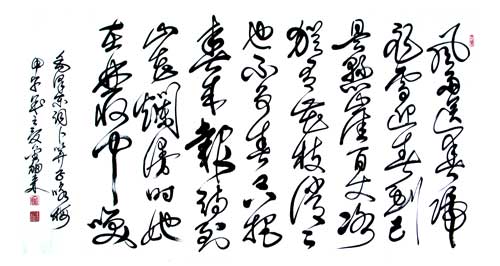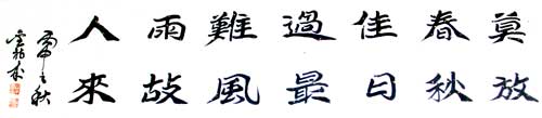 金福来,男,1954年生 ,取号海川。一生无门无师,以古今名家碑拓书帖为伴,力耗几十年光阴,相伴春秋岁月 ,历尽寂寞与艰辛,潜心研习。中华五千年灿烂文化,象形和符号在先人的聪明和智慧中逐渐演变发展和统一,成为世界上独一无二的方块字,书写各种形式和形态,那优美浪漫的线迹跳跃在白纸之间。飘逸灵动,情感交融,展示了中华传统文化的无限魅力,展示了美妙的人生智慧和博雅和谐的艺术情怀。现任中国书画家协会理事,名誉主席。